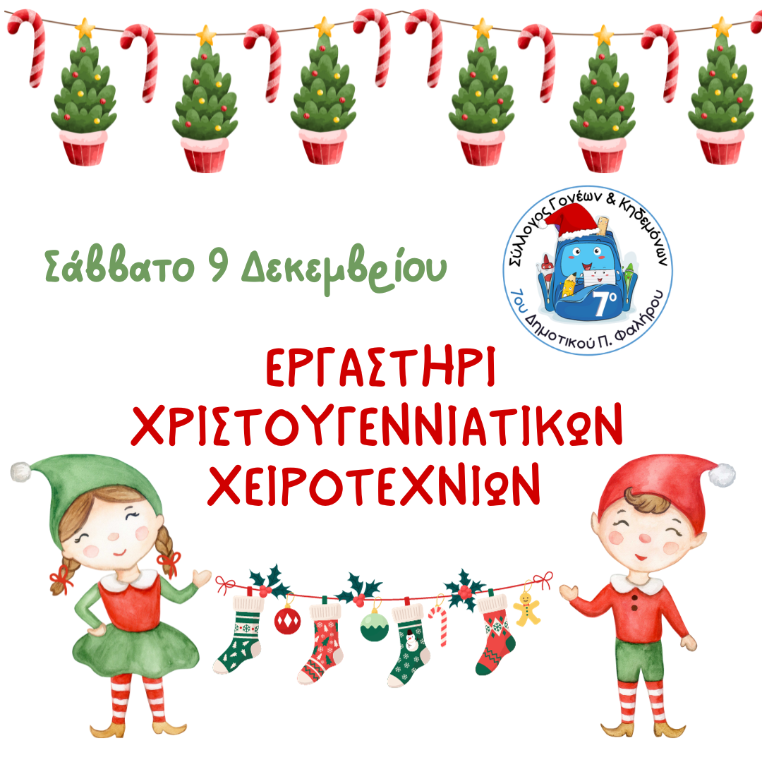 Η πιο όμορφη εποχή του χρόνου έφτασε! Το Σάββατο 9 Δεκεμβρίου στο χώρο της τραπεζαρίας, τα παιδιά θα φτιάξουν χριστουγεννιάτικες χειροτεχνίες με χαρτόνι, κορδέλες και διάφορα άλλα διακοσμητικά! Χειροτεχνίες όπως γιρλάντες από χεράκια, ευχετήριες κάρτες, δεντράκια από χάρτινες φόρμες για cupcake. Για την καλύτερη οργάνωση του εργαστηρίου, παρακαλούμε όπως συμπληρώσετε την παρούσα φόρμα ενδιαφέροντος και να μας δηλώσετε σε ποιο τμήμα θα παρευρεθείτε.